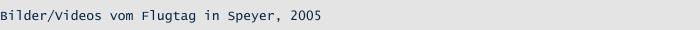 | Index | | | Beschreibung | | ------ | - | --------------------------------------------------------------------------------------- | | #1 | | | Hier gibts ein paar Videos von Hubschrauber Indoor Flügen (Wohnzimmer und so) | | #2 | | | Der Flugtag in Speyer (2005), diesmal richtige...keine Modelle | | #3 | | | Helitreffen 2009 bei Heidelberg | | #4 | | | Modellflugtreffen auf der Fuchs Ranch (2006) |